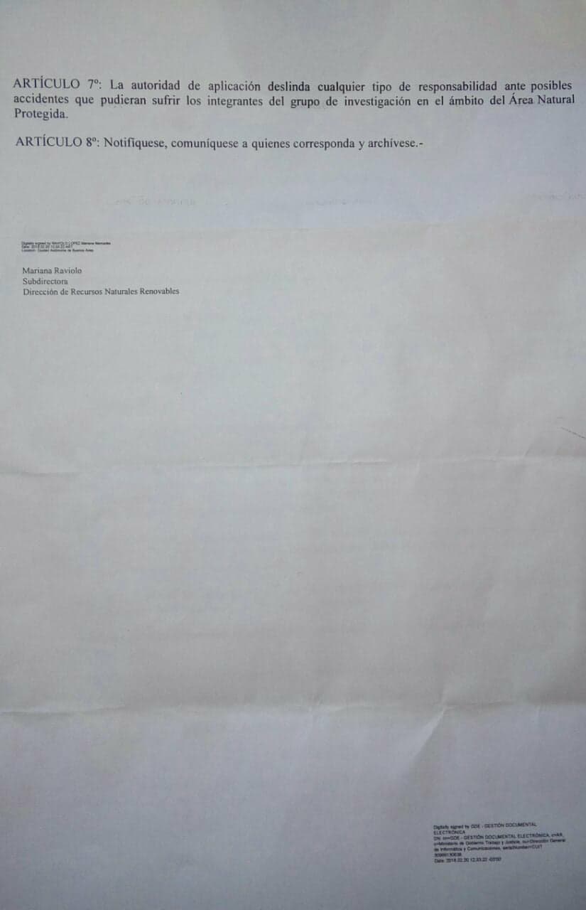 Esta es la copia de la Resolución 11-E-2018 de la DRNR, que autoriza las tareas de prospección de hidrocarburos no convencionales en la Reserva Natural Divisadero Largo, disfrazadas de "investigación científica". El primer considerando de la misma es bastante claro y contundente respecto de la intencionalidad del Gobierno de Mendoza al respecto, como dicen los abogados "a confesión de parte, relevo de prueba". Valga la aclaración, ya que el presente escrito es en esencia un documento público, y su contenido revelador echa por tierra de antemano cualquier tipo de floreo discursivo que pretendan esgrimir los funcionarios involucrados, en pos de intentar desmentir la veracidad concreta y empírica que el propio escrito expone.